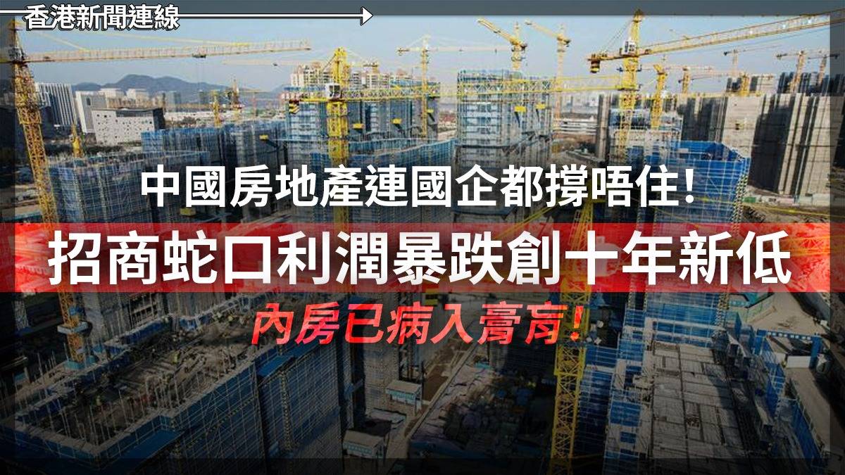 中國房地產連國企都撐唔住!招商蛇口利潤暴跌創十年新低 內房已病入膏肓!